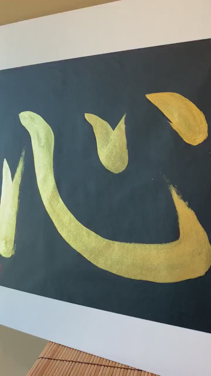 It will be painted with gold or silver (your choice) sumi ink on black calligraphy paper and framed with a white mat board.