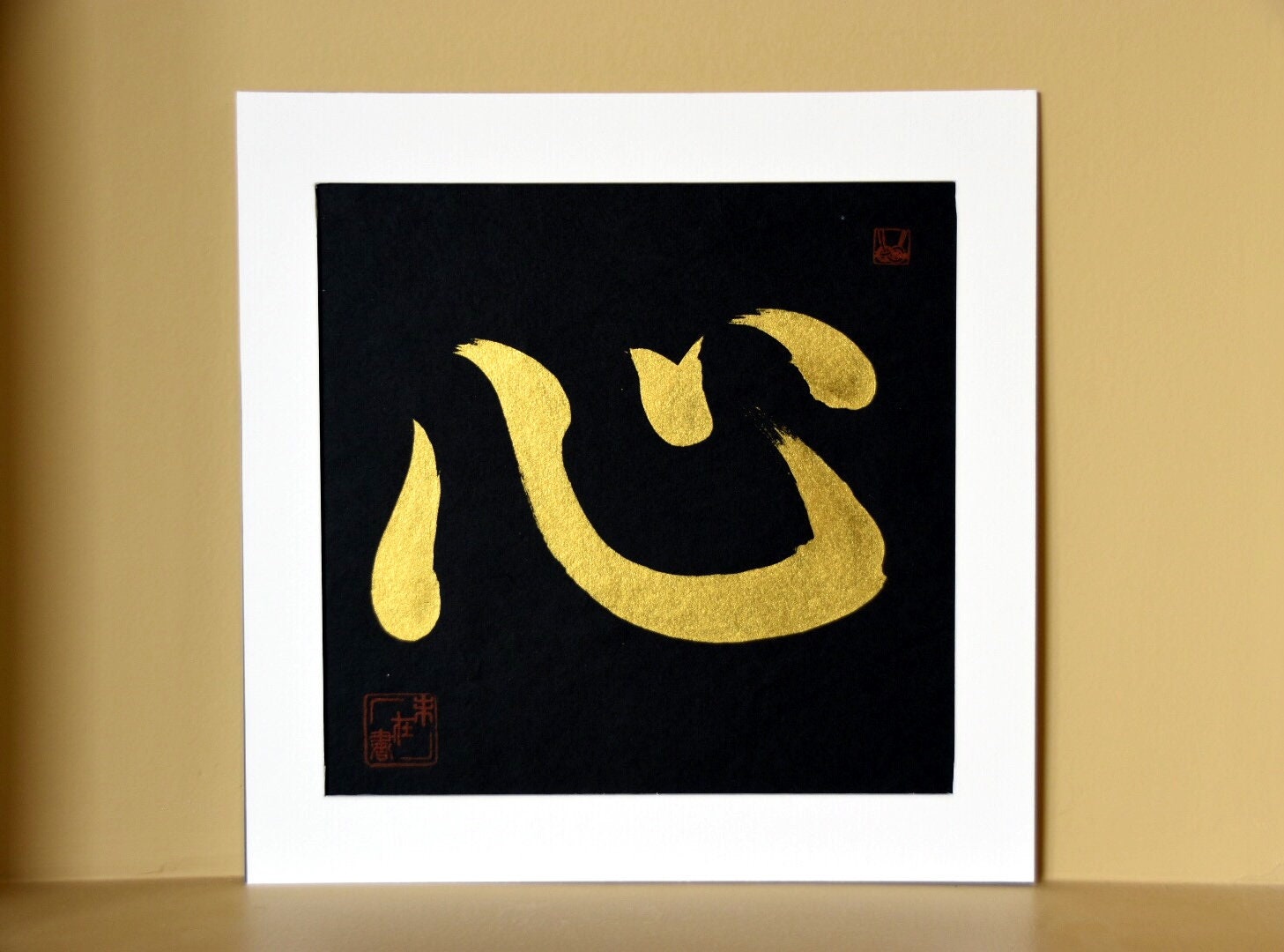Japanese Shodo Calligraphy Art 心 Kokoro Heart Mind Spirit Martial Arts Dojo gift Mindfulness Meditation Wabisabi Bushido Inspirational