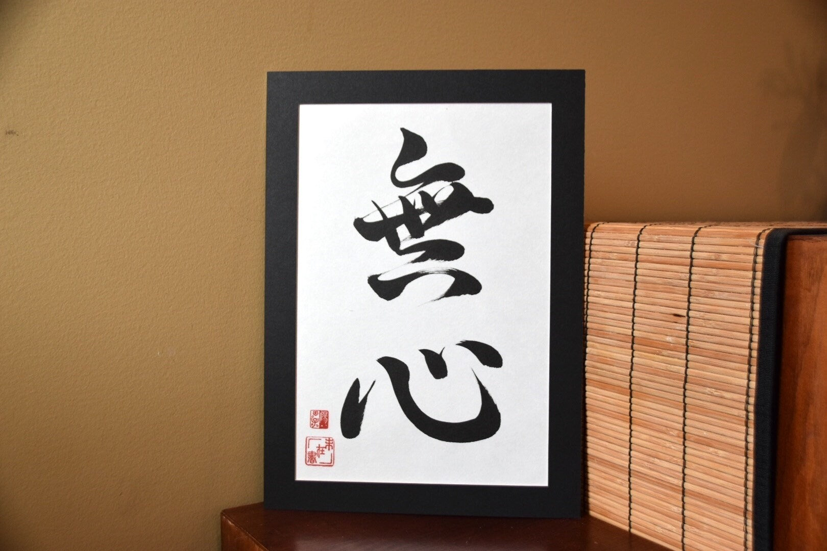 Japanese Shodo Calligraphy Art 無心 Mushin No Mind Mind without Mind Kanji Zen Buddhism Martial Arts Dojo Sensei Mindfulness Meditation