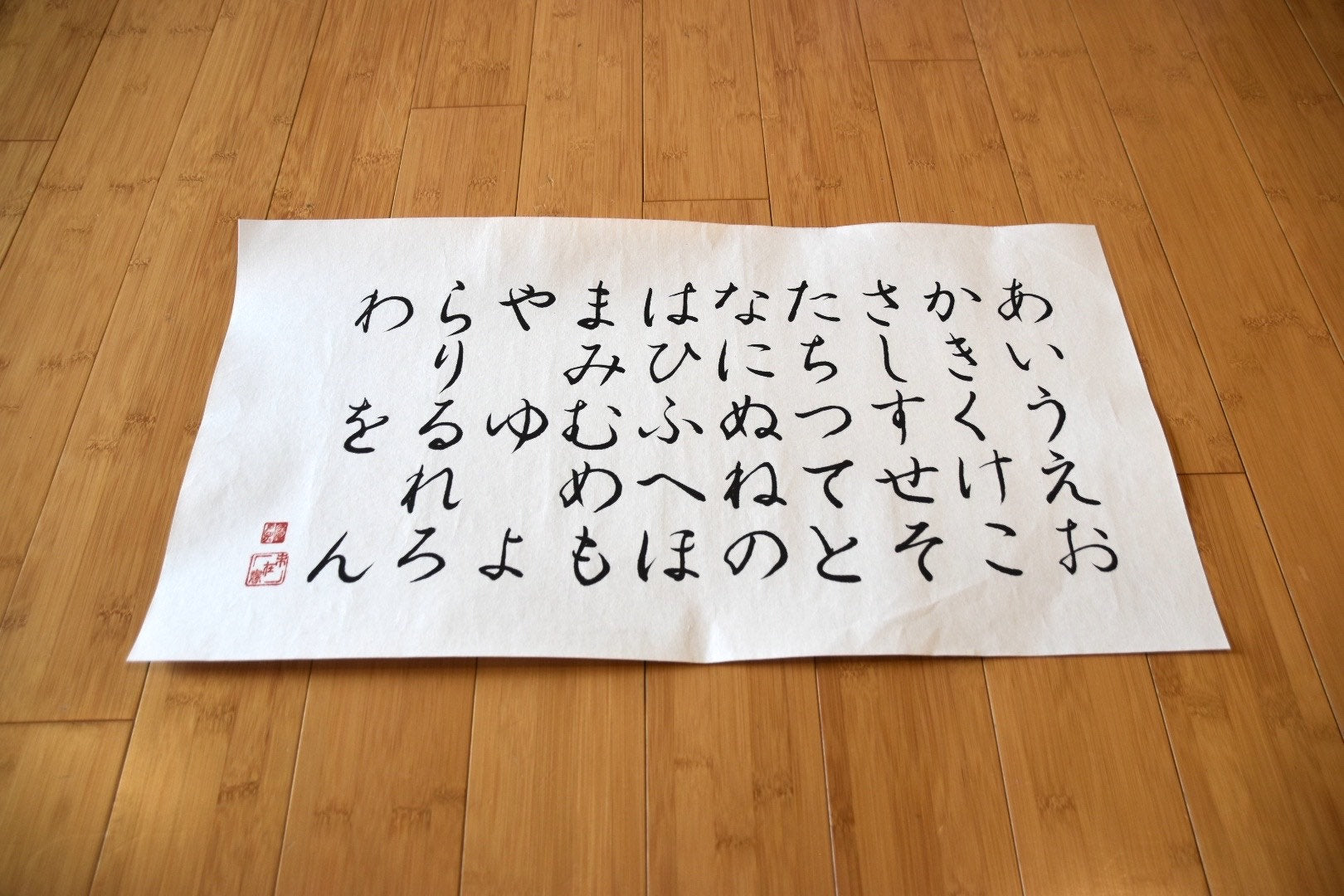 Japanese Shodo Calligraphy Art Handwritten Hiragana Alphabet Chart on Washi Paper あいうえお Japanese Study Room Decor Washi Lamp Asian
