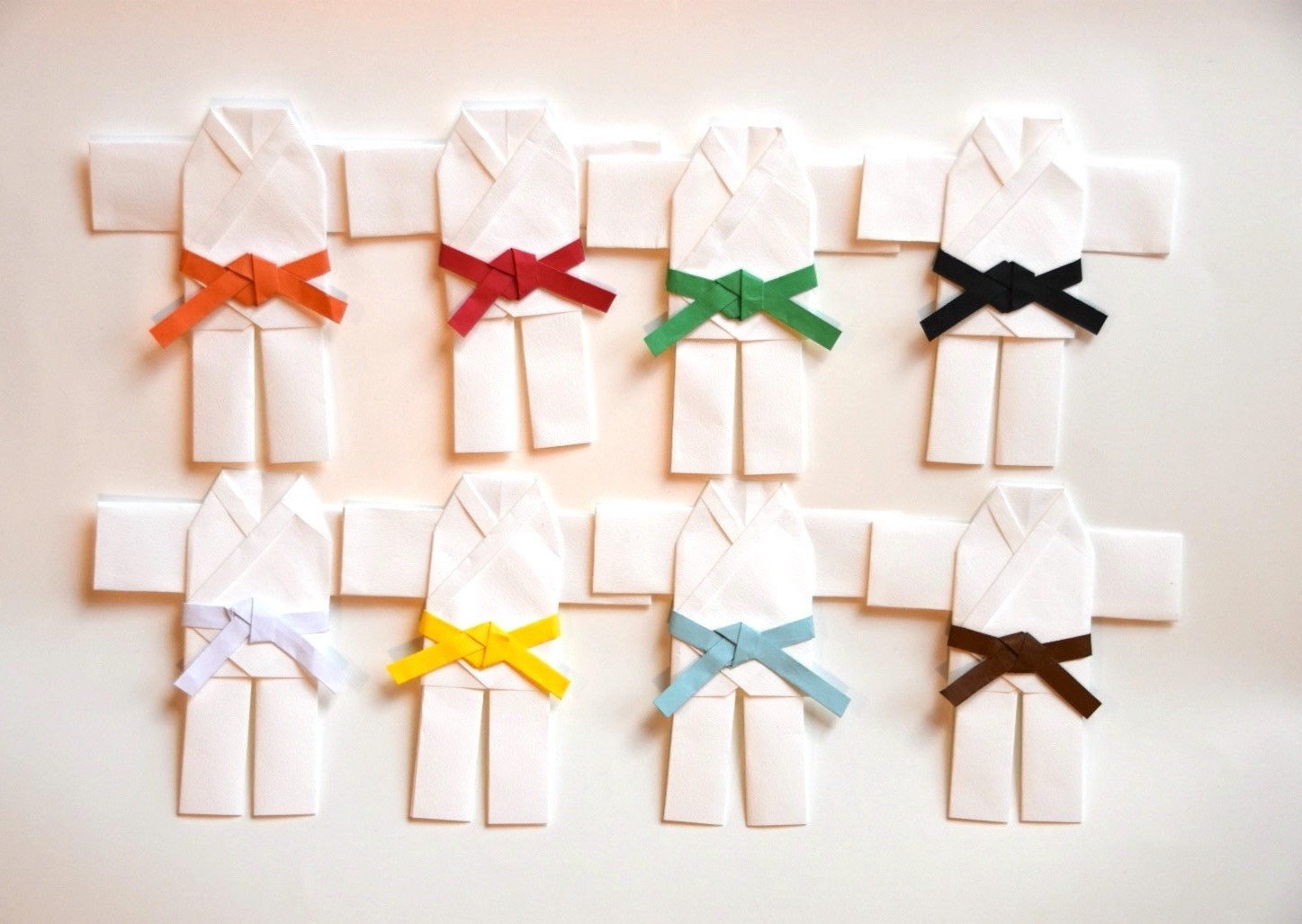 Personalized greetings cards with high quality and hand-folded (by me) Origami/Tant paper Dogi/Keiko-gi (martial arts uniform) with various colored belts